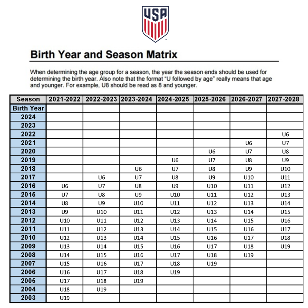 The NYS West Youth Soccer Association provides the guidelines for the age group your child(ren) should play. See the image above and the corresponding box with your child(ren)’s birth year(s).